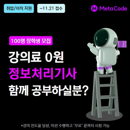 메타코드에서 정처기 강의를 무료로 제공한다고 이벤트가 나왔다.