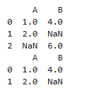 'A'컬럼에 있는 결측치 열의 데이터만 제거된 것을 확인할 수 있다.