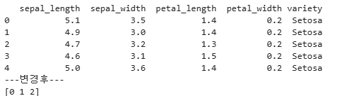 우선 iris.csv['variety']의 값들을 수치형으로 라벨링을 해보자!