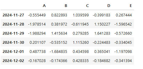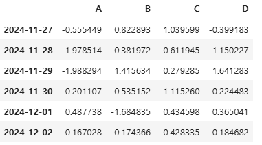df = pd.DataFrame(np.random.randn(6,4), index = dates, columns = list('ABCD'))