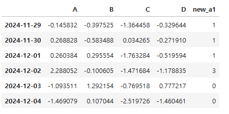 df['new_a2'] = pd.cut(df['A'], [-3, -1, 0, 1, 3], labels = [1,2,3,4])