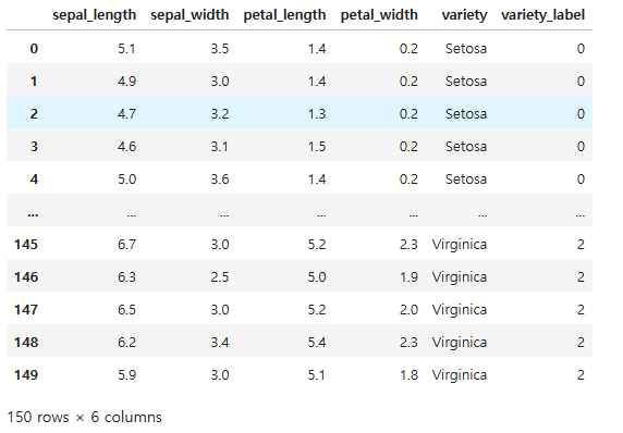 즉, iris에서 variety는 Setosa, Versicolor, Virginica 3종류가 있다.